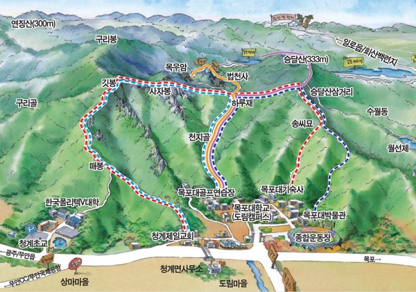 <span>1. [원점회귀 산행 코스] 목포대학교 정문 기점 - 매봉 - 깃봉 - 하루재- 천치골 - 정문</span>